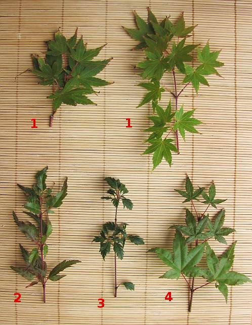 1 : Acer p. 'Sango kaku' 2 : Acer p. 'Beni Hagoromo' (1) 3 : Acer p. 'Beni Hagoromo' (2) 4 : Acer p. 'Deshojo'